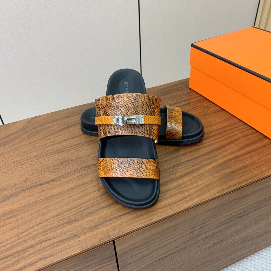HM Heracles Sandals Brown Beige Frabic Calfskin 294068