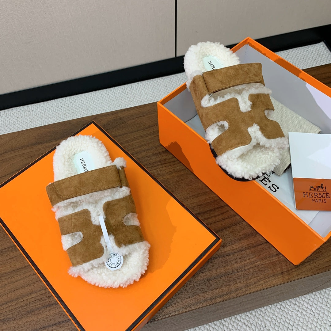 HM Chypre Sandal In Dark Beige Lamb Wool 984181