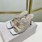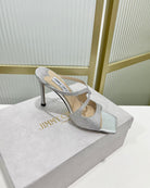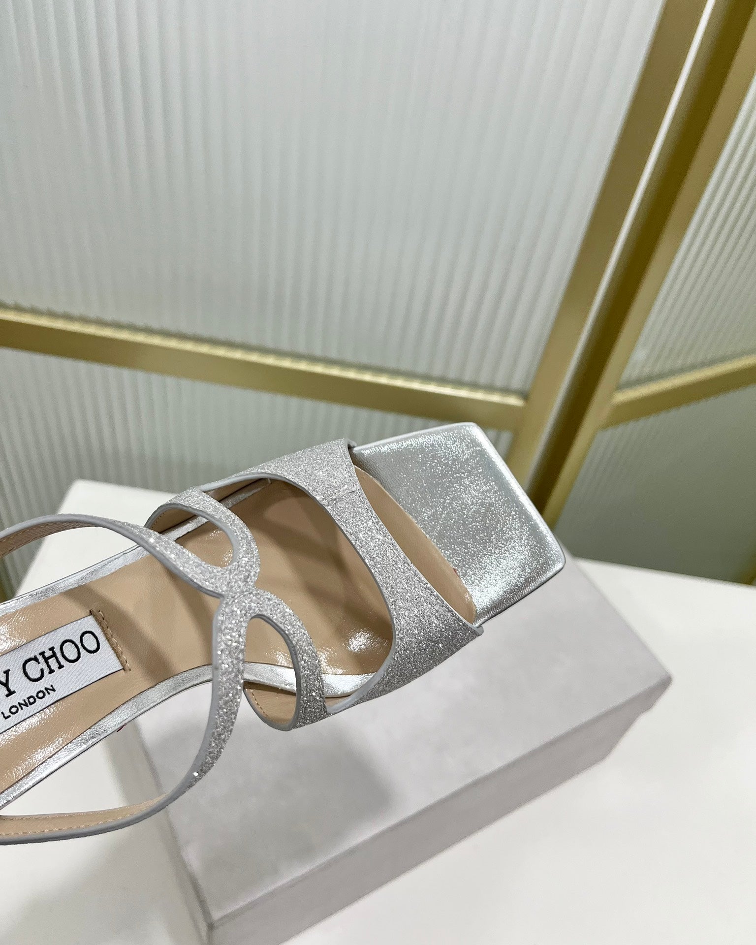 Jimmy Anise 85 In Silver Cowhide With Glitter Mules 587698