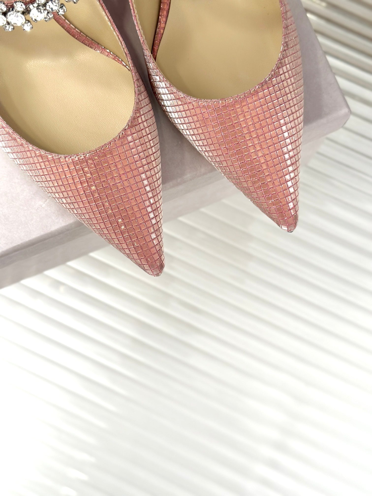 Jimmy Bing 65mm In Rose Pink Stone Studded Cowhide Mules 593198