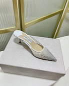 Jimmy Mule 65mm In White Mesh Fabric With Swarovski Crystal 597885