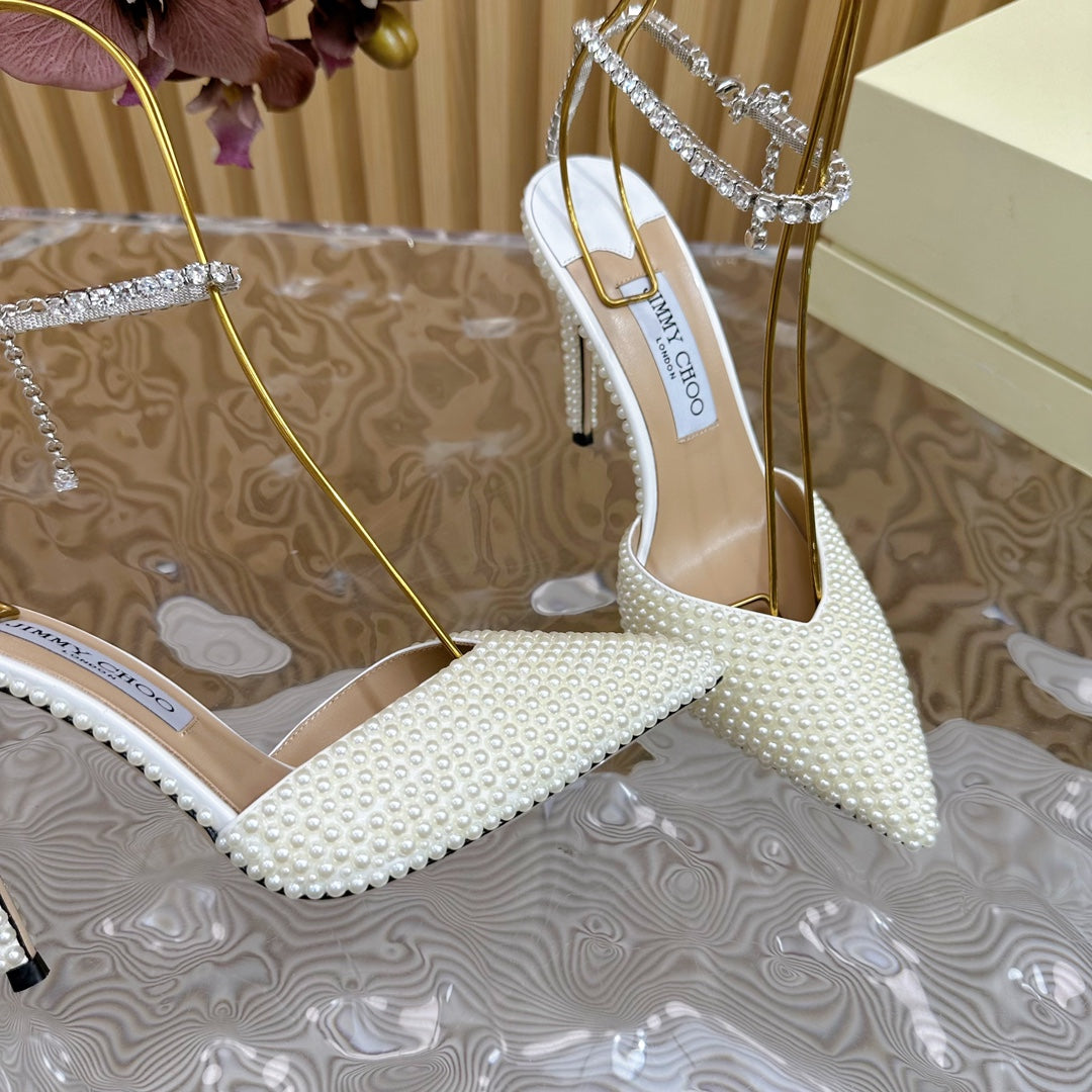Jimmy Saeda 105 In White Pearl Studded Lambskin Pumps 581507