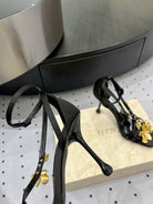 Jimmy Zea 95 In Black Cowhide Sandals With Metal Flowers 591586