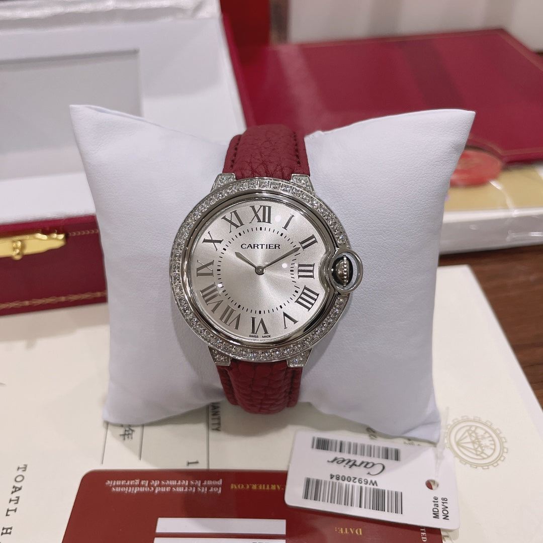 Cartier Ballon Bleu 36mm Diamond Leather