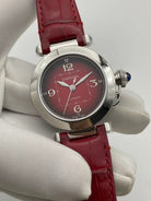 Cartier Pasha 33mm Silver Red Dial Leather