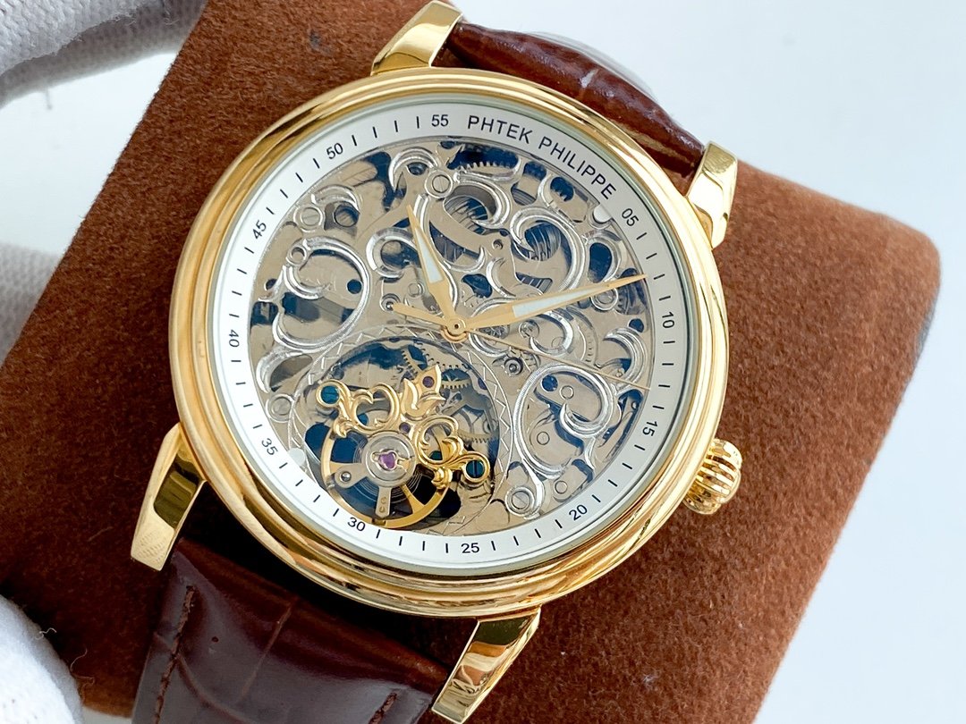 PATEK COMPLICATION GOLD CASE SKELETON DIAL