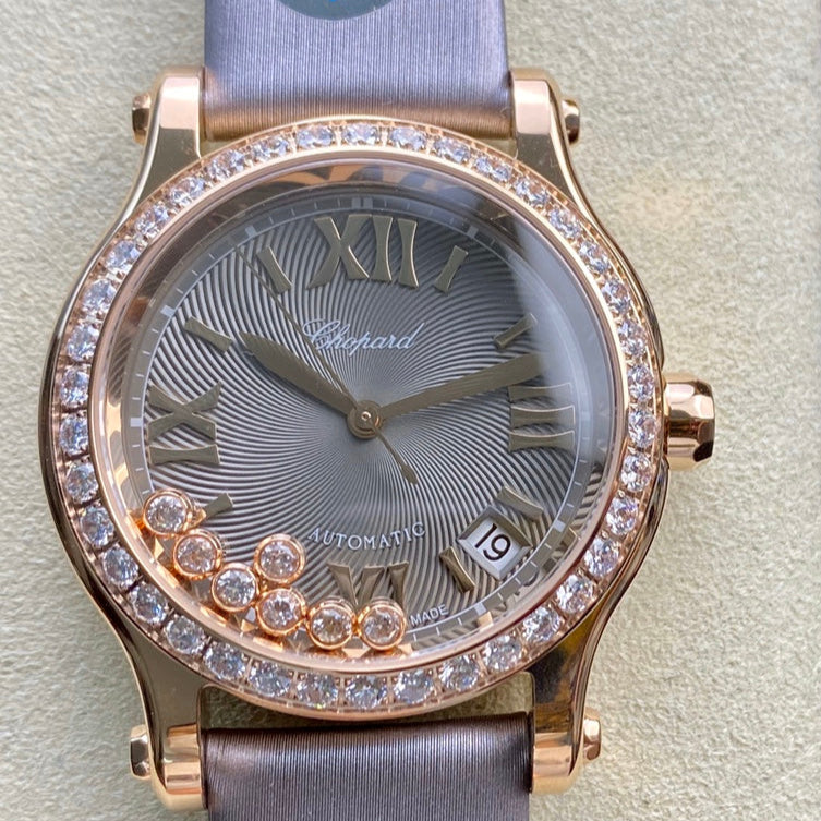 Happy Diamond Pink 36mm Pink Gold White Dial