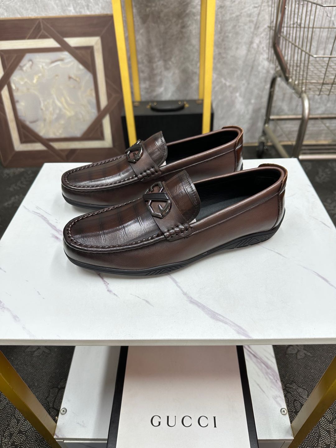 GG Men's Loafer Brown Embossed Cowhide 532511
