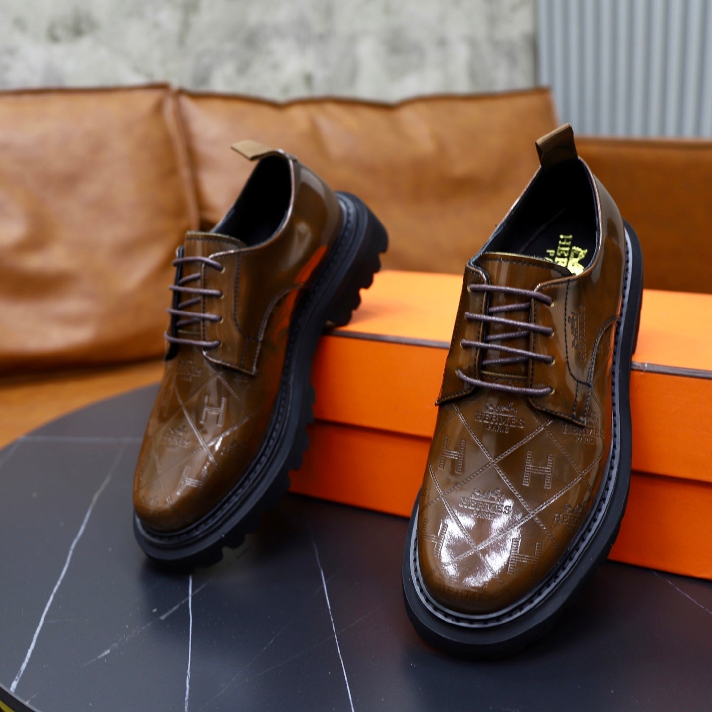 HM Men's Derby Shoes Brown Patent Leather 581372