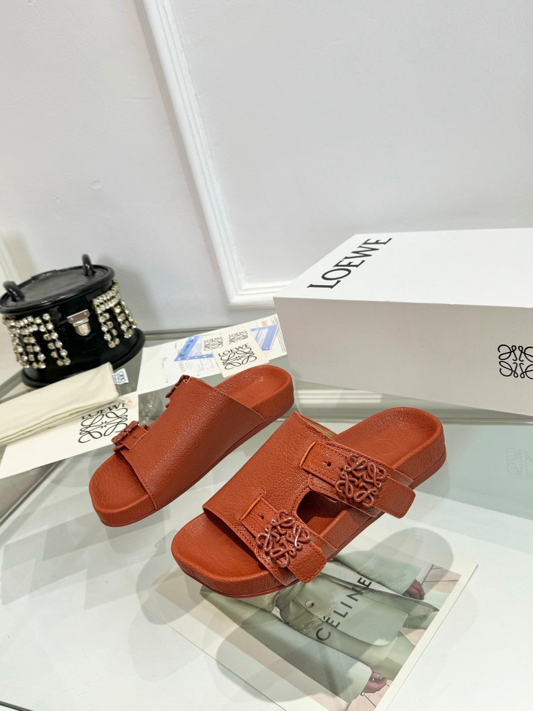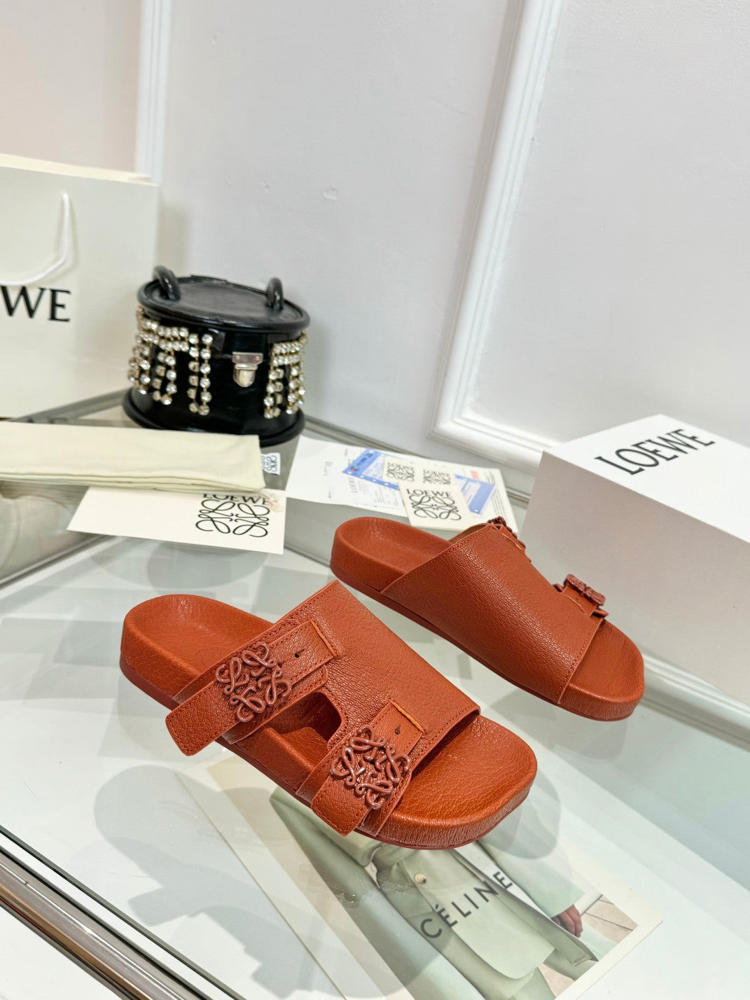 Loewe Ease Leather Slide Brown Sheepskin