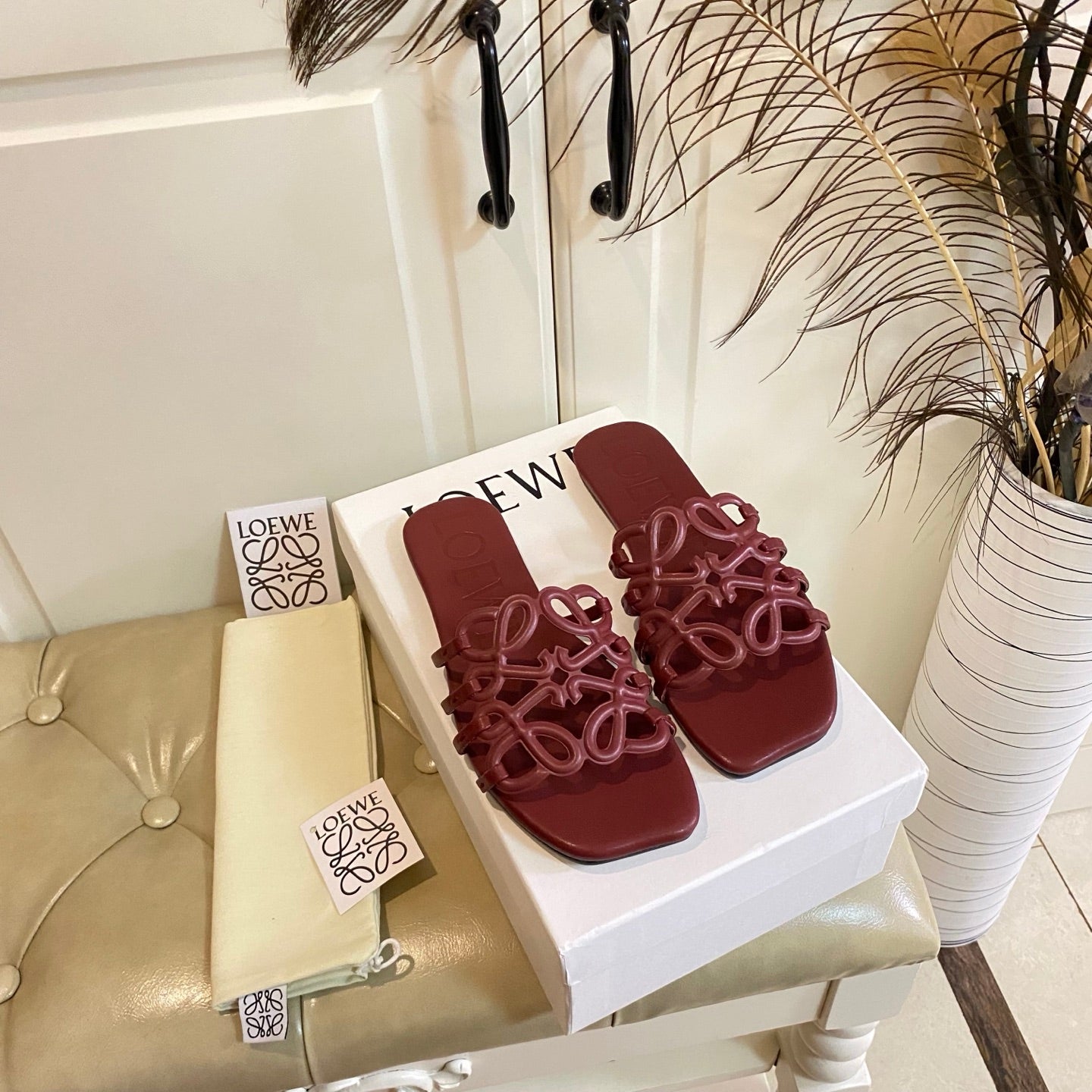 Loewe 25 Petal Anagram Slides Red Cowhide