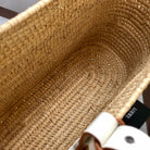 LOE SQUARE BASKET BAG 28 IN NATURAL RAFFIA AND WHITE CALFSKIN