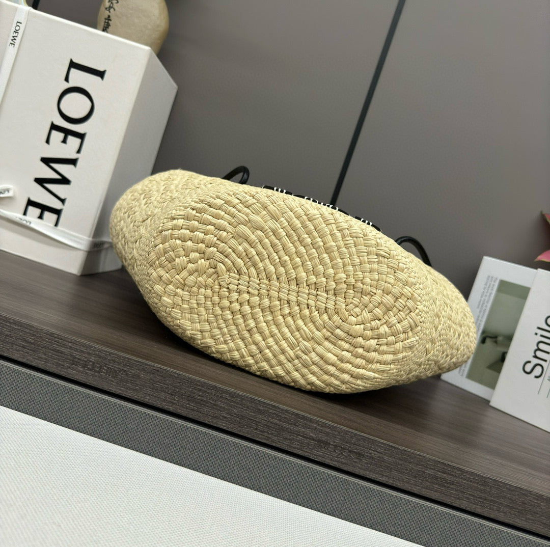 Loew Anagram Basket 34cm Beige Raffia Black Calfskin