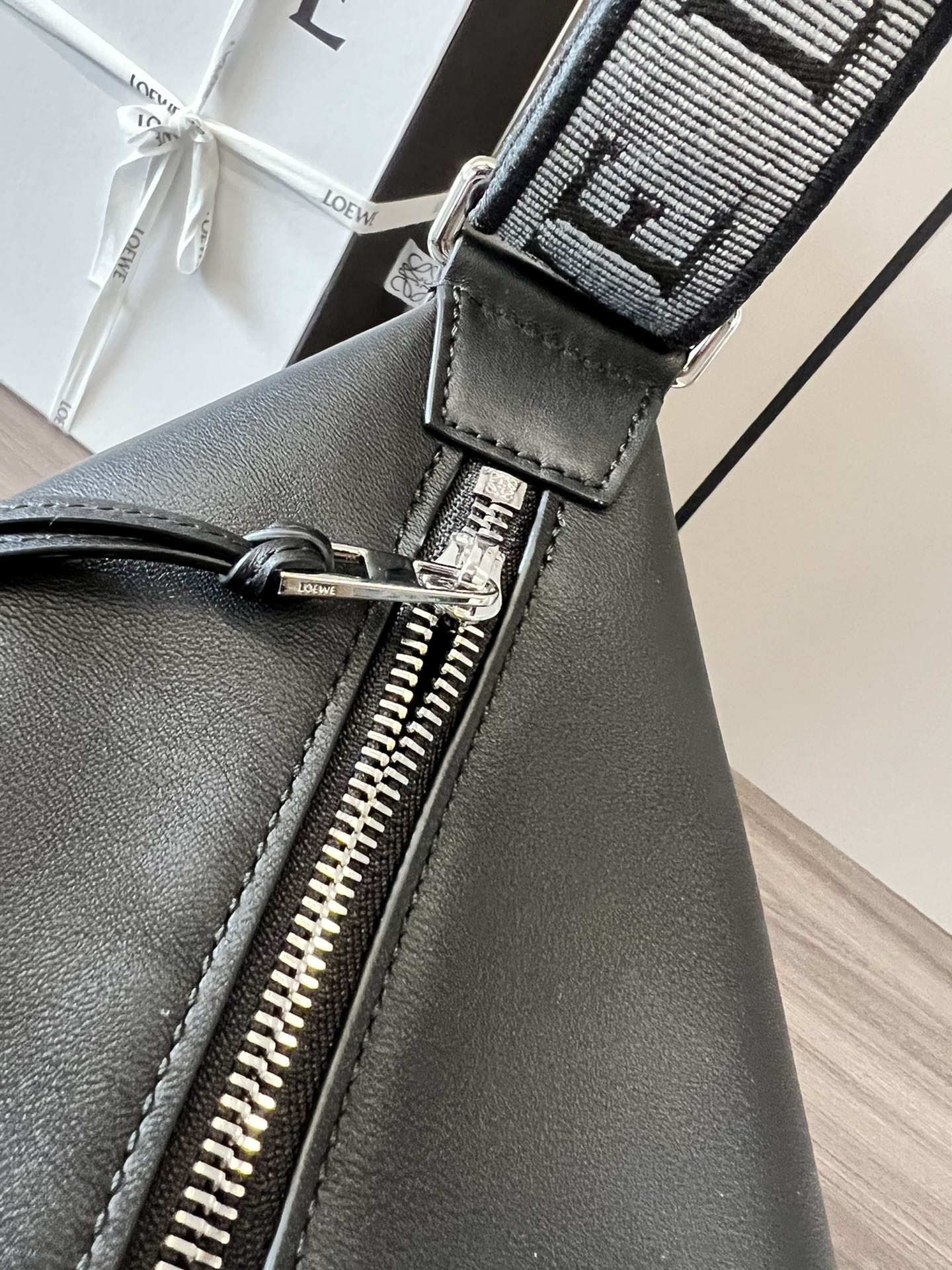 Loew Unisex Cubi Shoulder Crossbody Zipper Commuter Tote Bag Black smooth calfskin