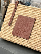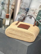 SMALL SQUARE 28 BASKET BAG IN RAFFIA AND CALFSKIN