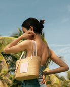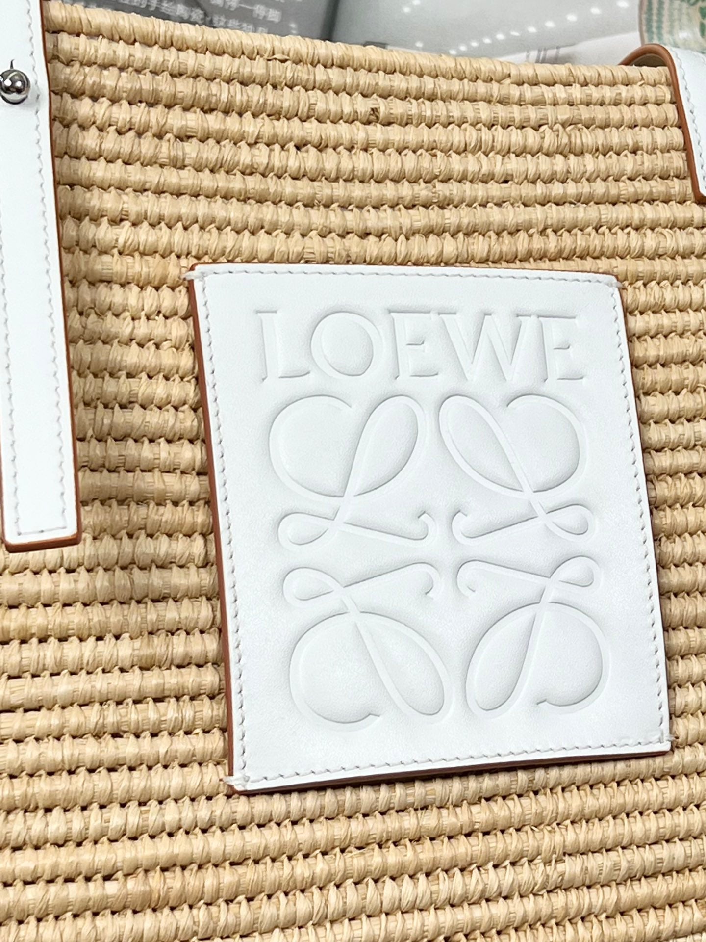 SMALL SQUARE 28 BASKET BAG IN RAFFIA AND WHITE CALFSKIN