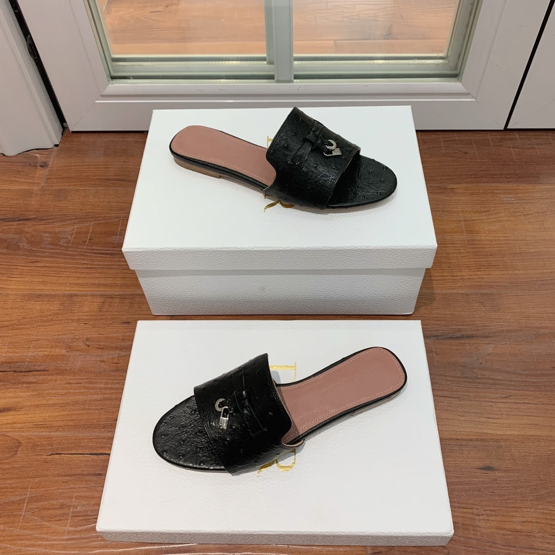 Summer Charms Sandals Mule Black Ostrich Brown Lambskin