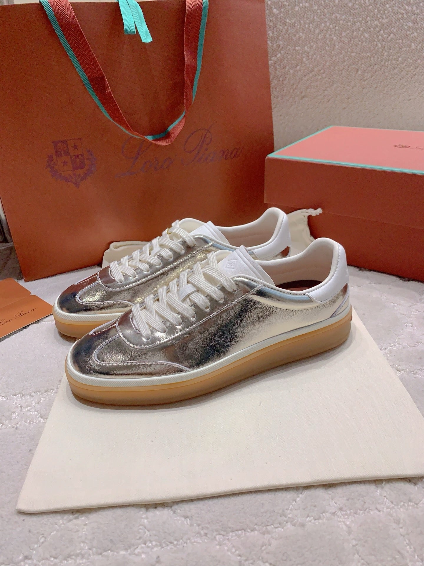 LP sneaker unisex style metallic silver sheepskin mix suede 382666
