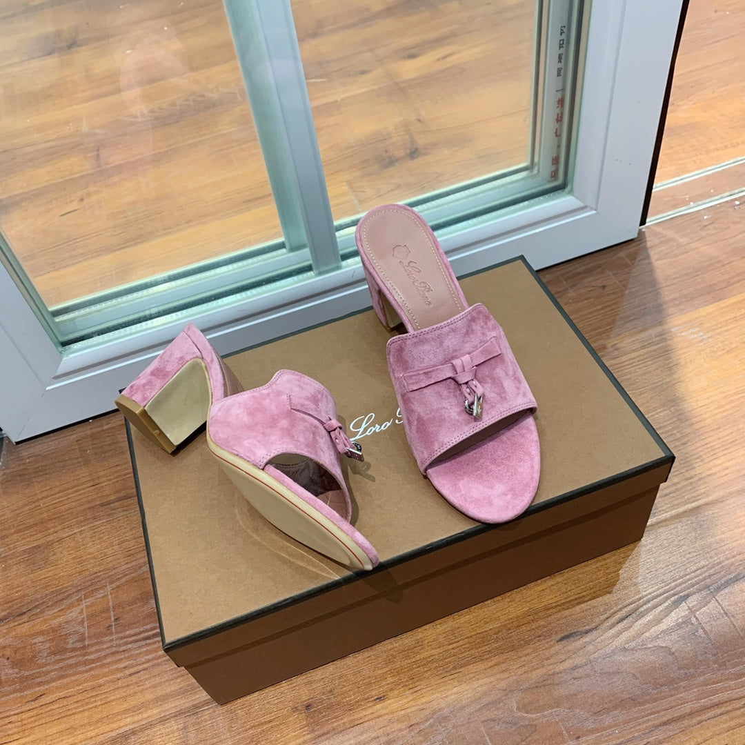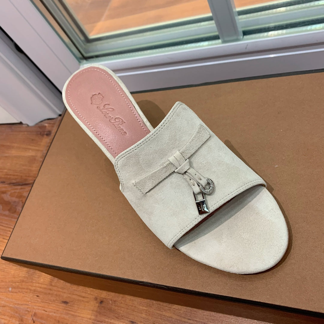 Summer Charms Mules 80 Pale Gray Suede Salmon Lambskin