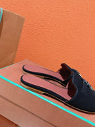 Summer Charms Sandals in Navy Suede Maroon Lambskin
