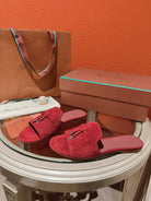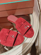 Summer Charms Sandals in Red Suede Maroon Lambskin