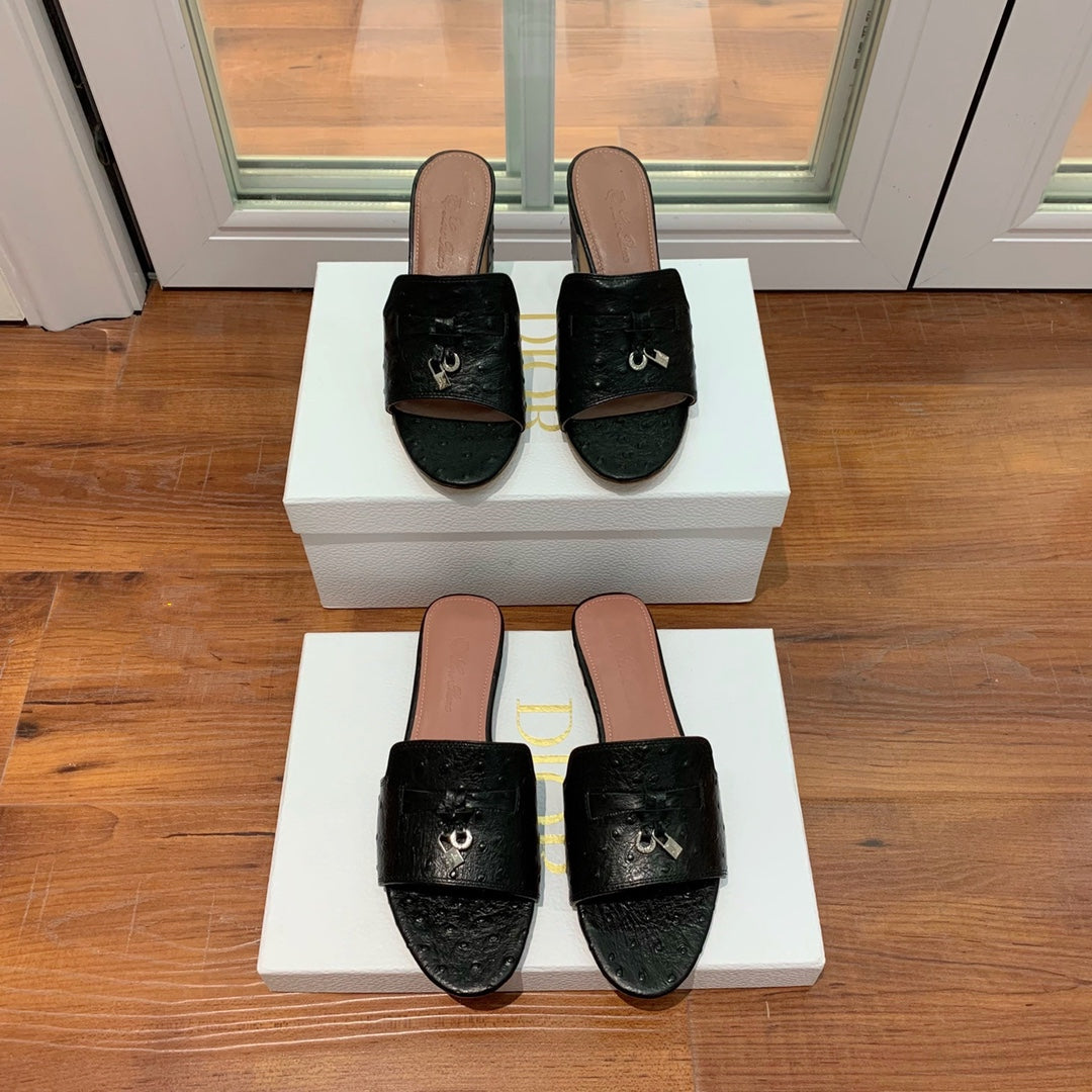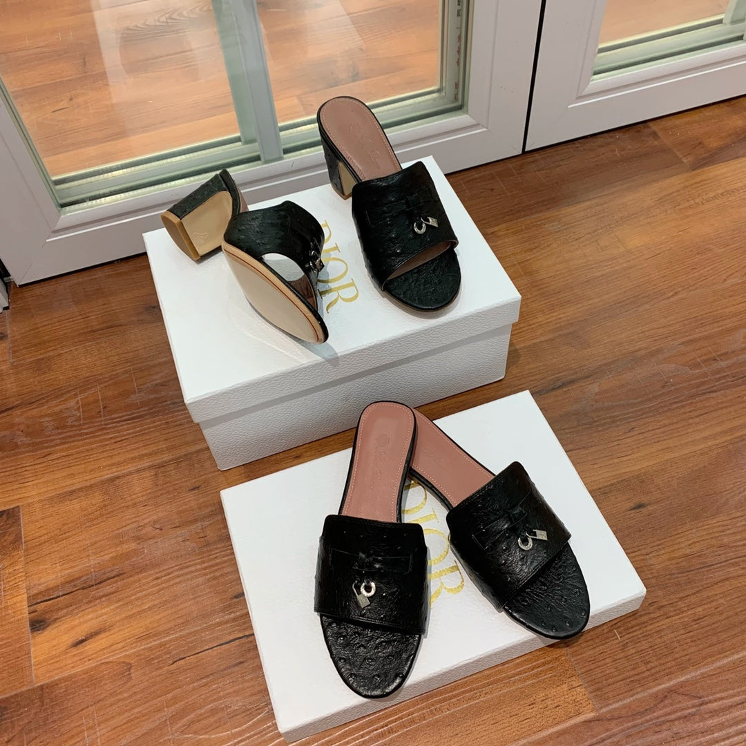 Summer Charms Sandals Mule Black Ostrich Brown Lambskin