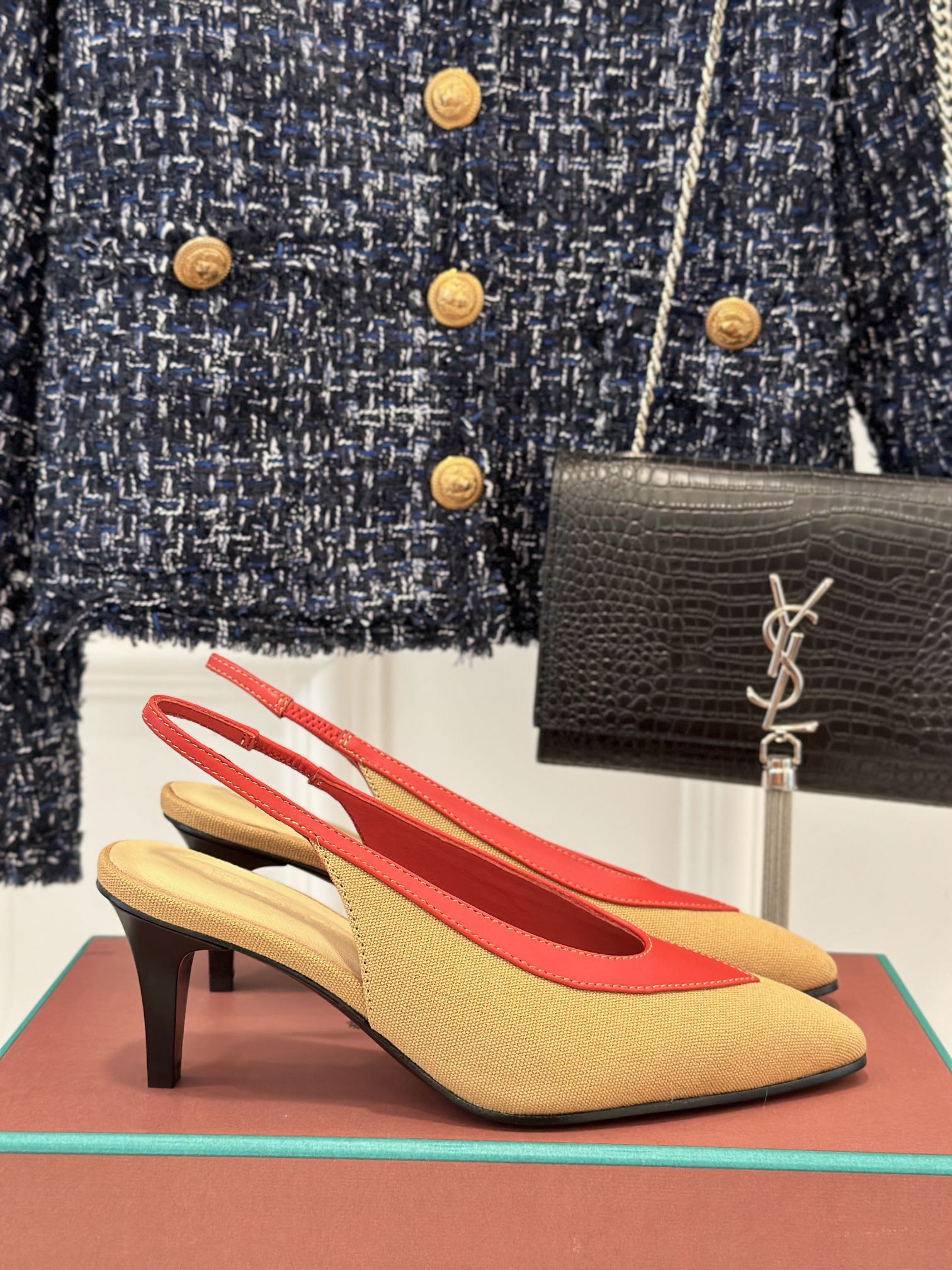 LP Rebecca Slingbacks In Mustard Brown Mix Red Cotton Fabric And Lambskin 989419