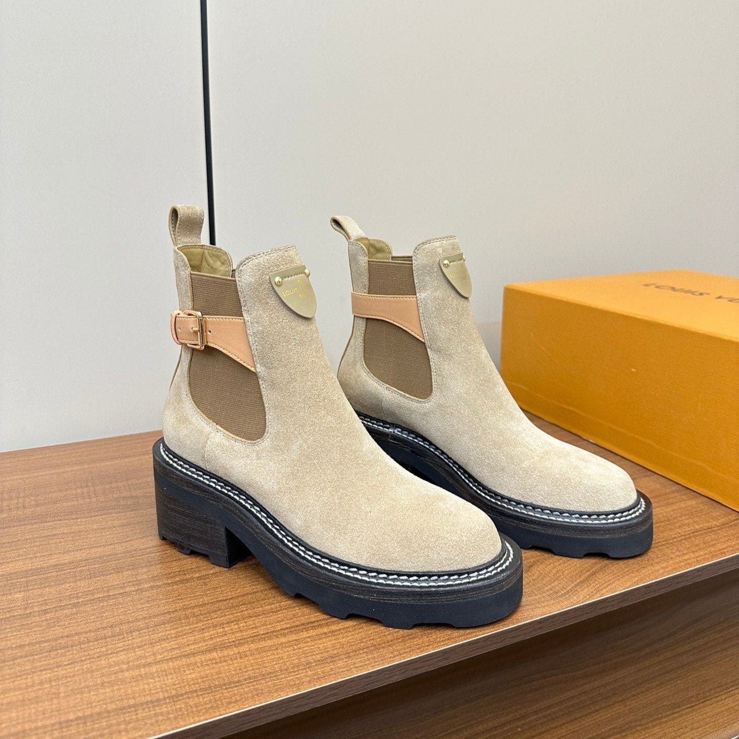 LV Beaubourg Ankle Boot Beige Suede