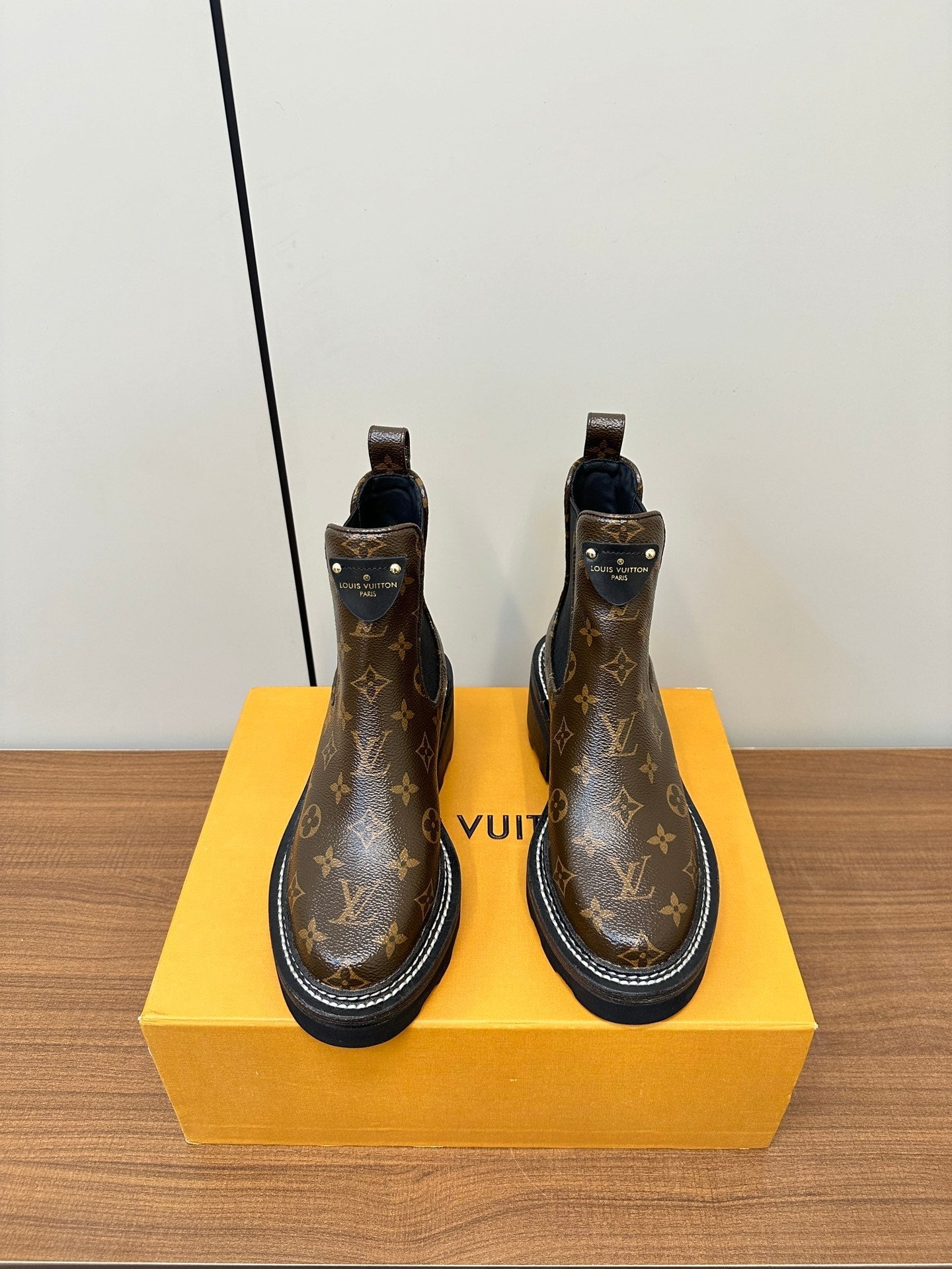 LV Beaubourg Ankle Boots Dark Brown Monogram Cowhide