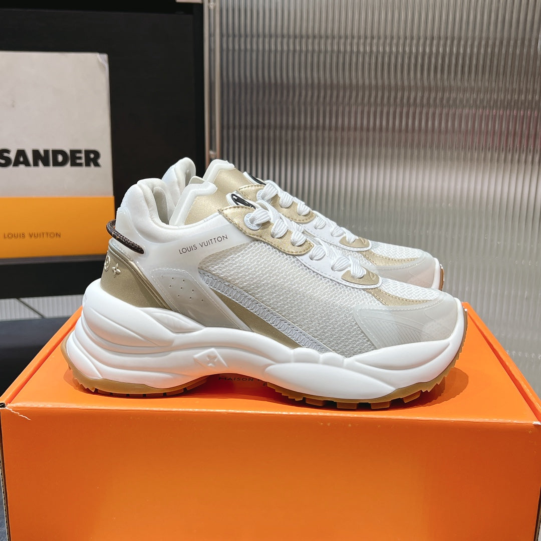 LV Run 55 Sneaker 55mm White Mix Gold Polyester Mesh Fabric