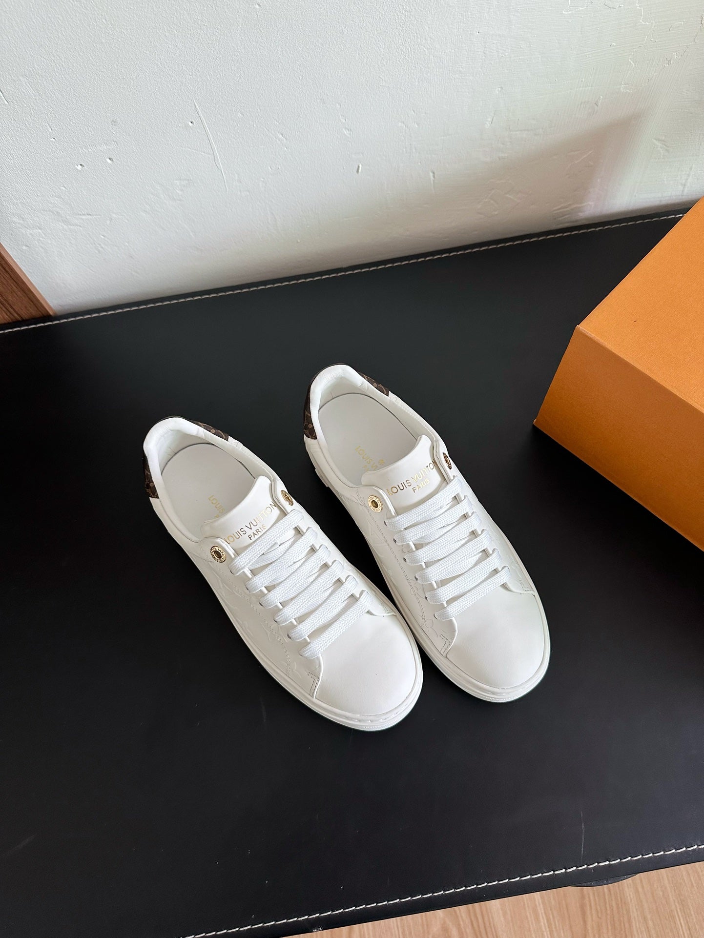 LV Time Out Sneakers White Mix Brown Monogram Cowhide