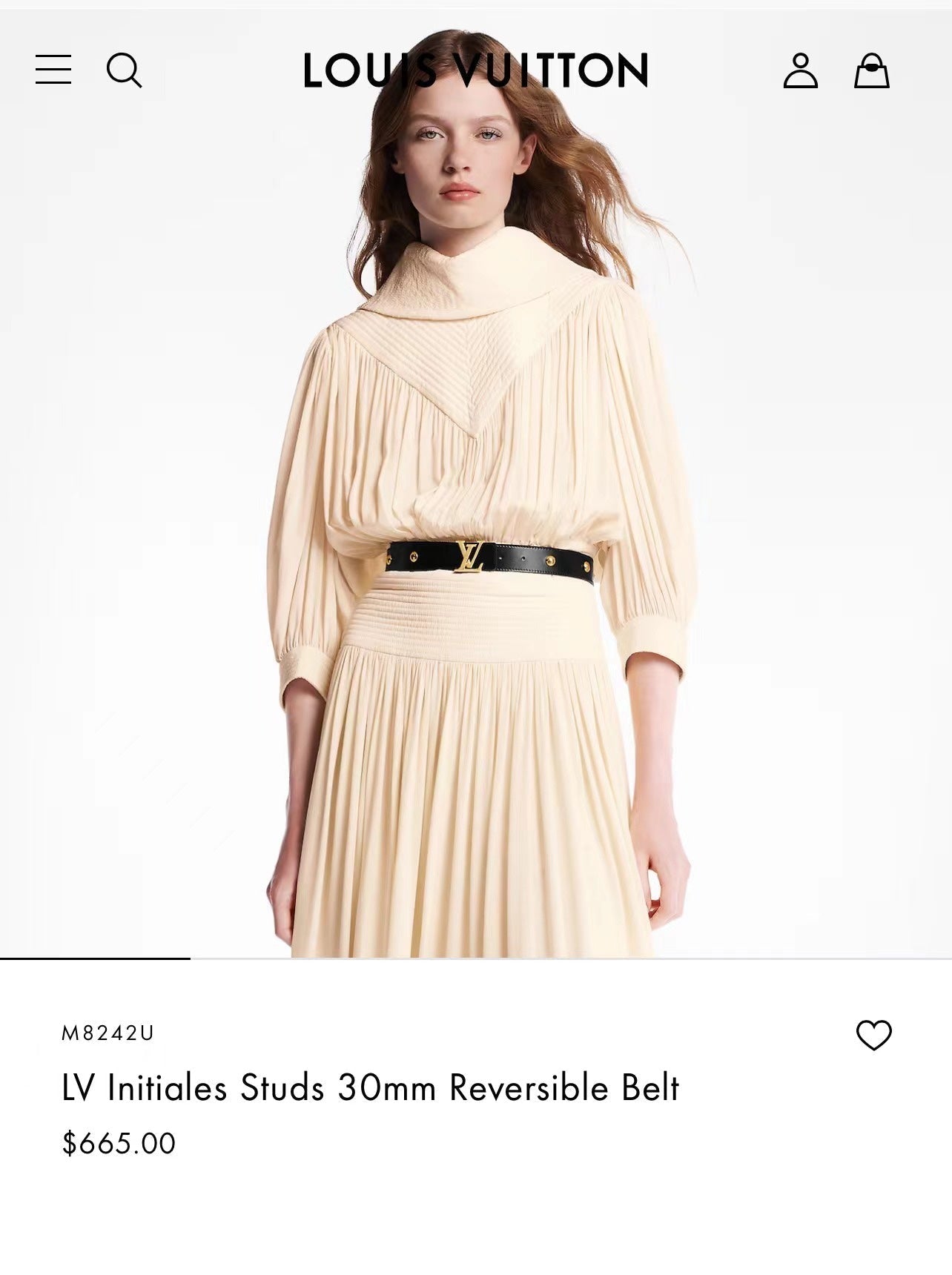 LV INITIALES STUDS 30 MM REVERSIBLE BELT IN BLACK CALFSKIN GOLD HARDWARE