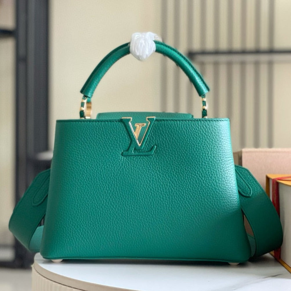 CAPUCINES MINI 21 DARK GREEN TAURILLON GOLD HARDWARE