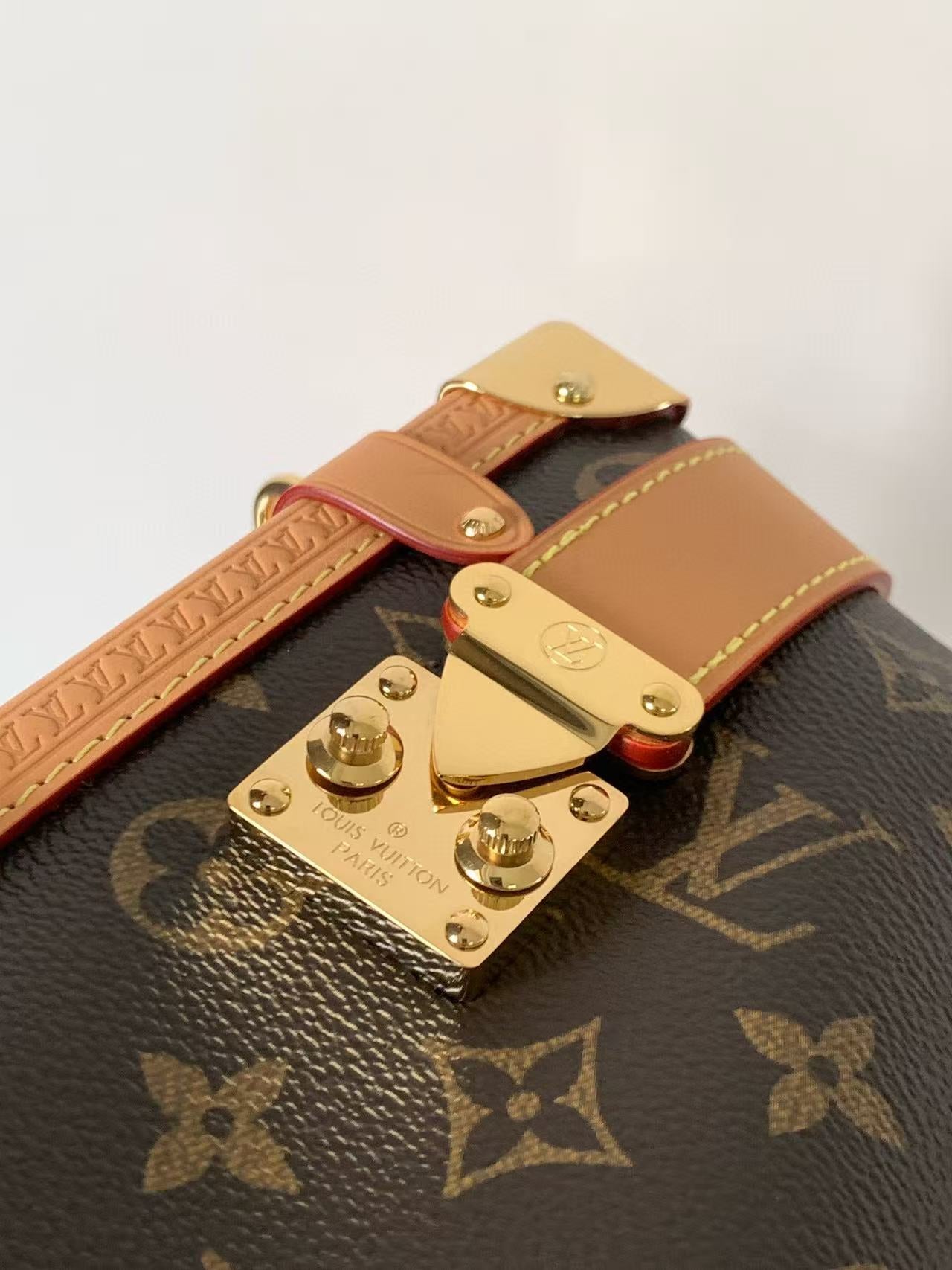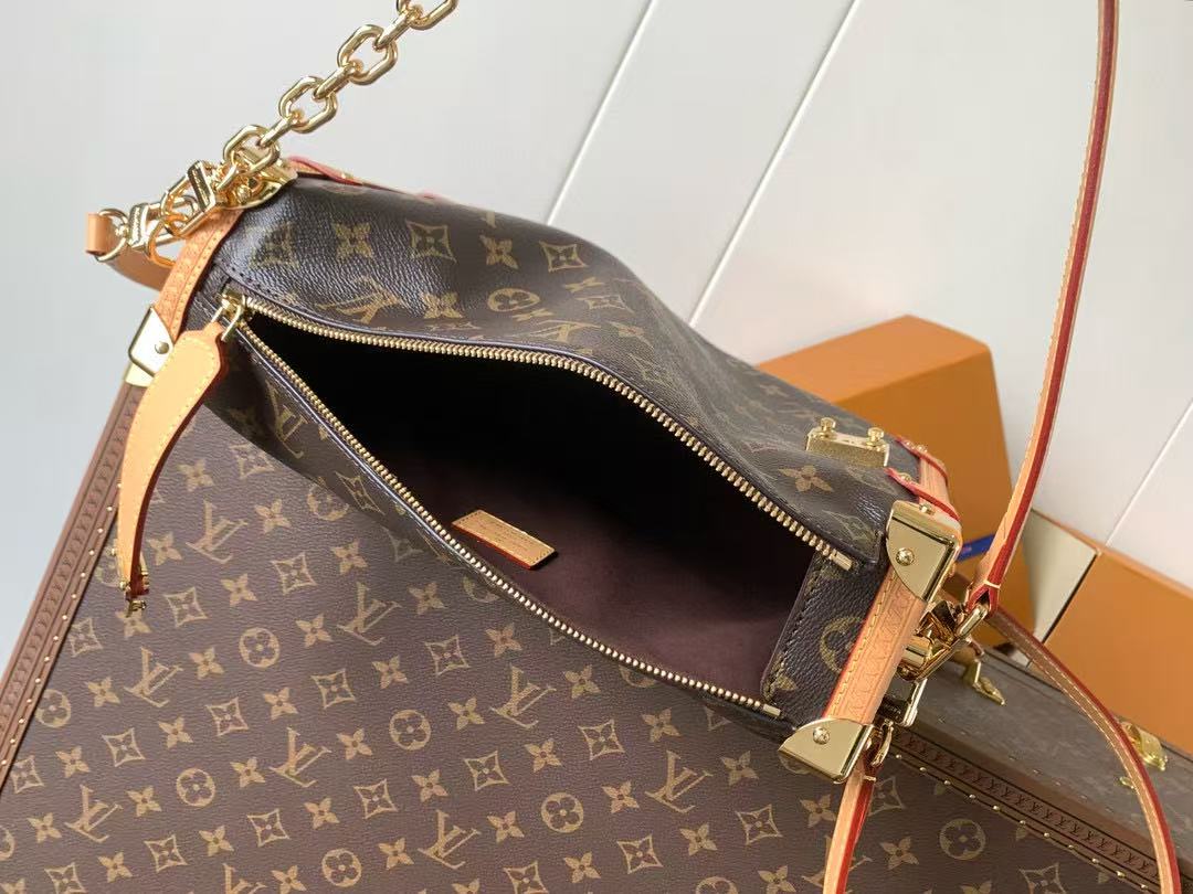 LV Side Trunk Bag 30cm Brown Beige Canvas Cowhide