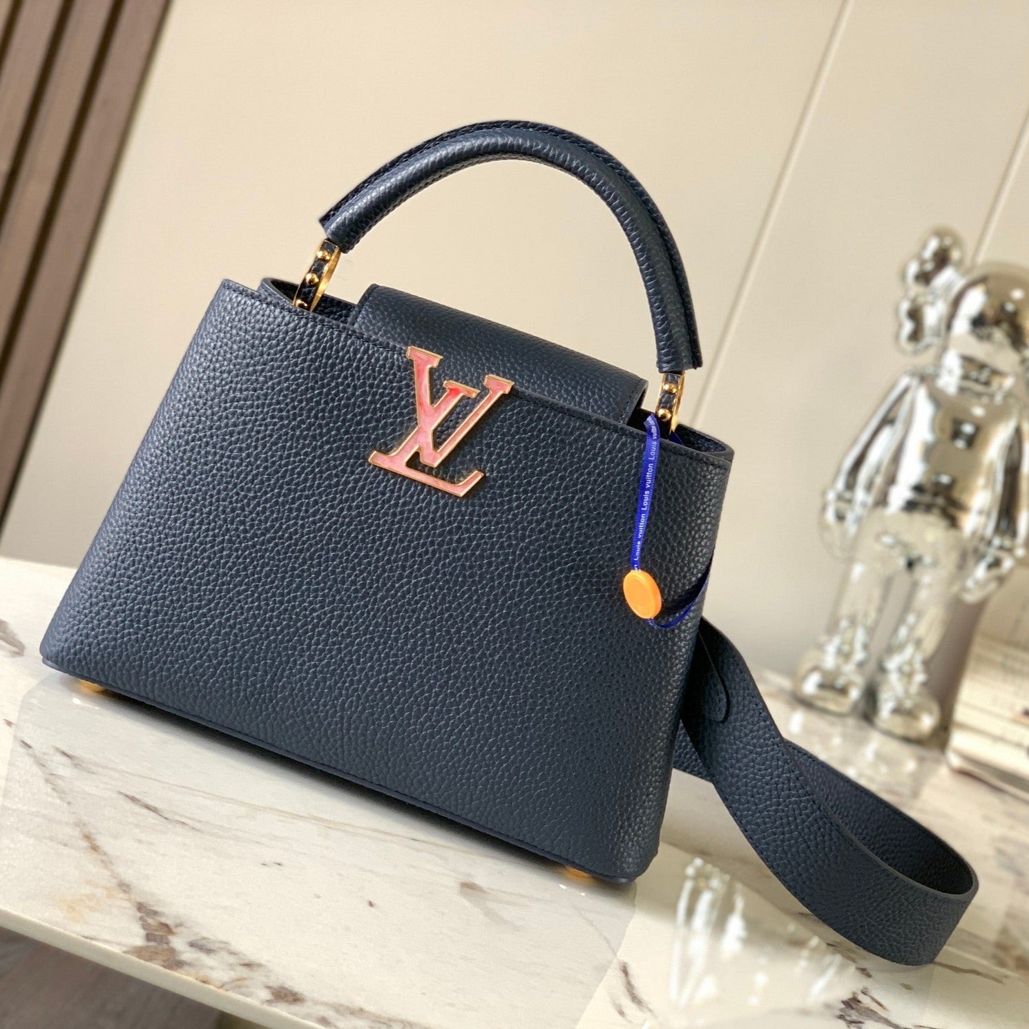 capucines bb 27 midnight blue taurillon leather gold hardware