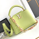 CAPUCINES BB 27 IN PEAR GREEN TAURILLON GOLD HARDWARE