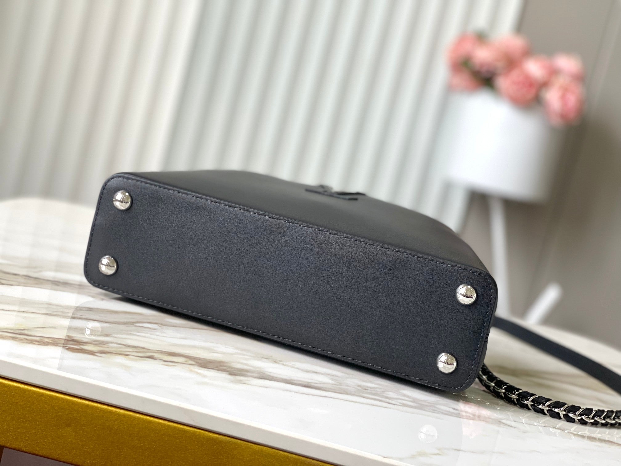 CAPUCINES EAST-WEST 30 IN BLACK SHEEPSKIN CRYSTAL AND SILVER HARDWARE