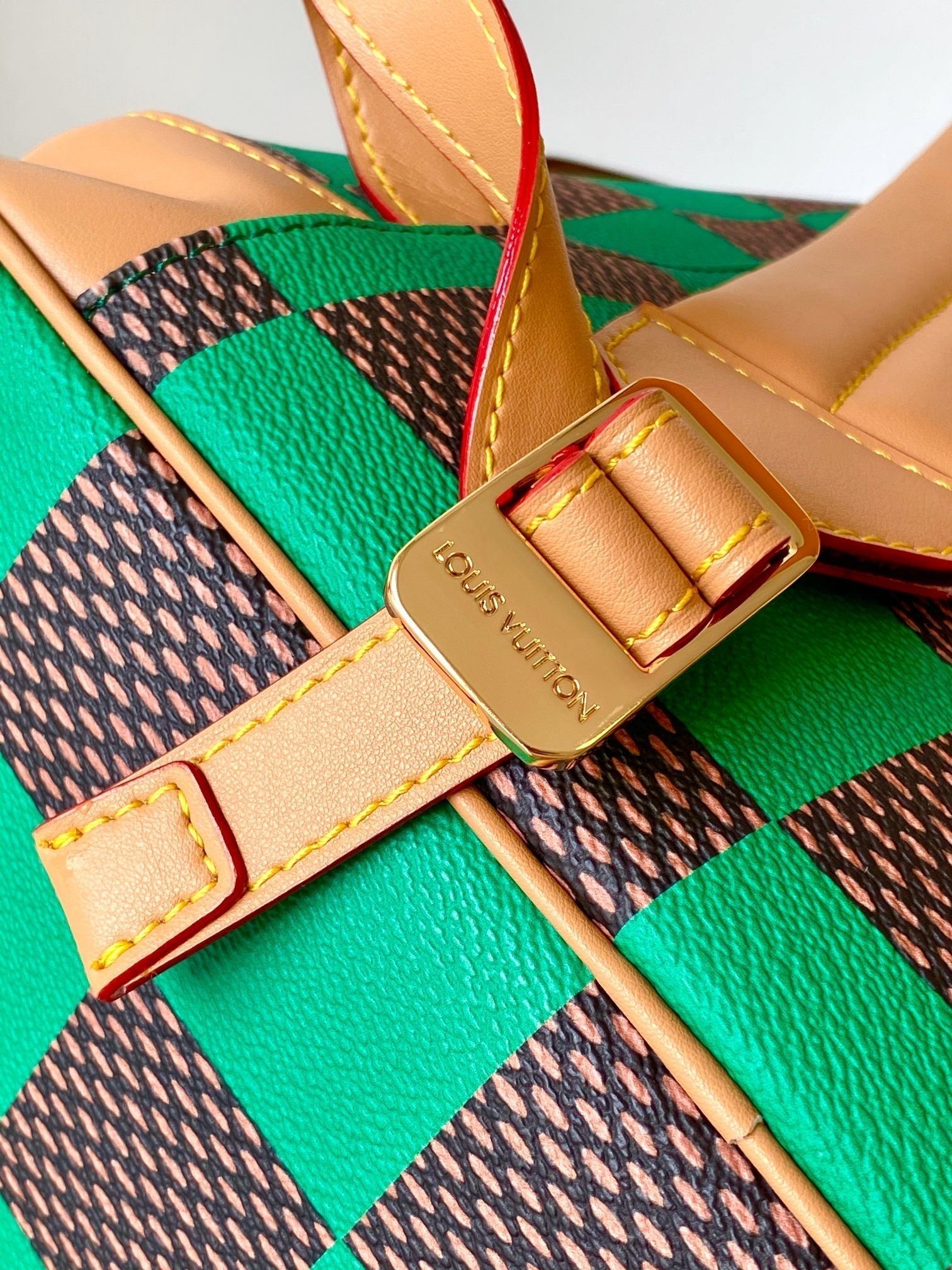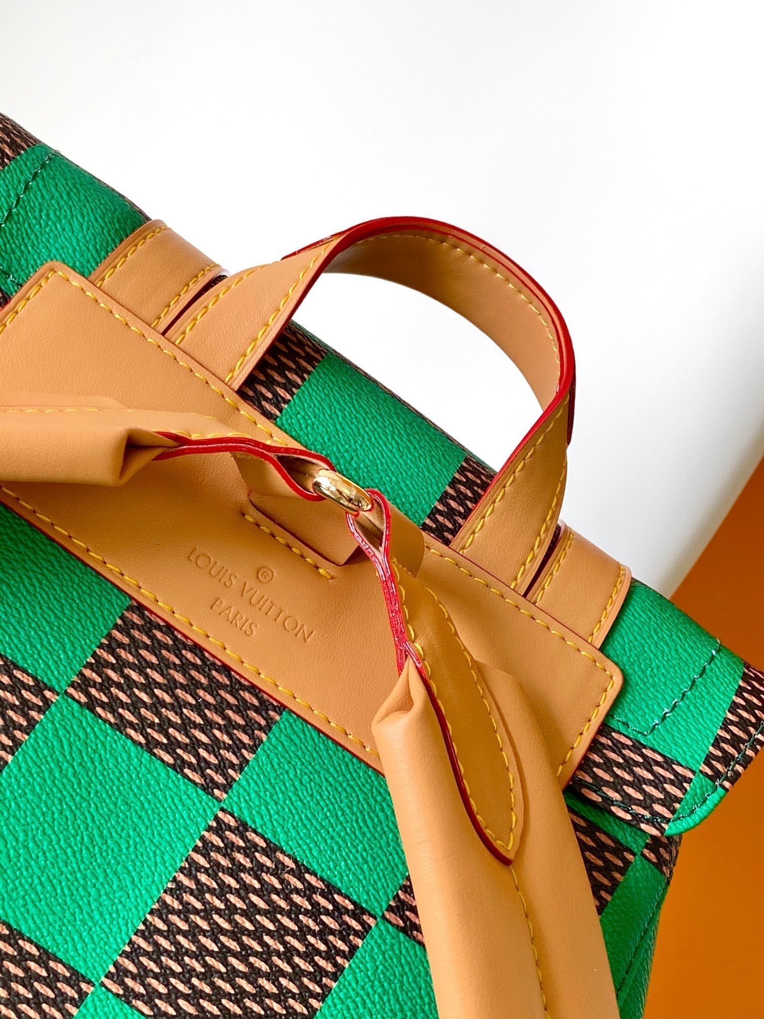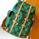 CHRISTOPHER BACKPACK 47 IN BROWN GREEN DAMIER POP COATED CANVAS