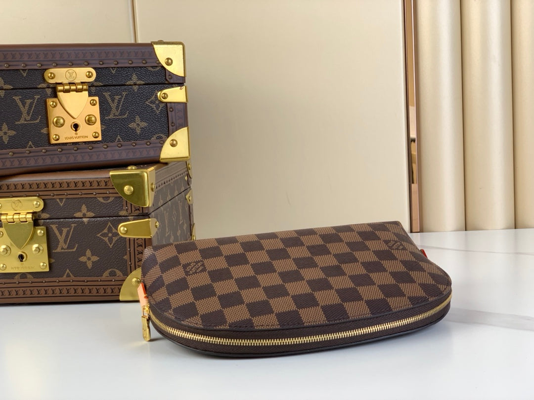 COSMETIC POUCH 22 IN BROWN DAMIER EBENE CANVAS