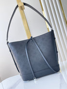 FLORE 28 IN CHARCOAL PERFORATED CALFSKIN