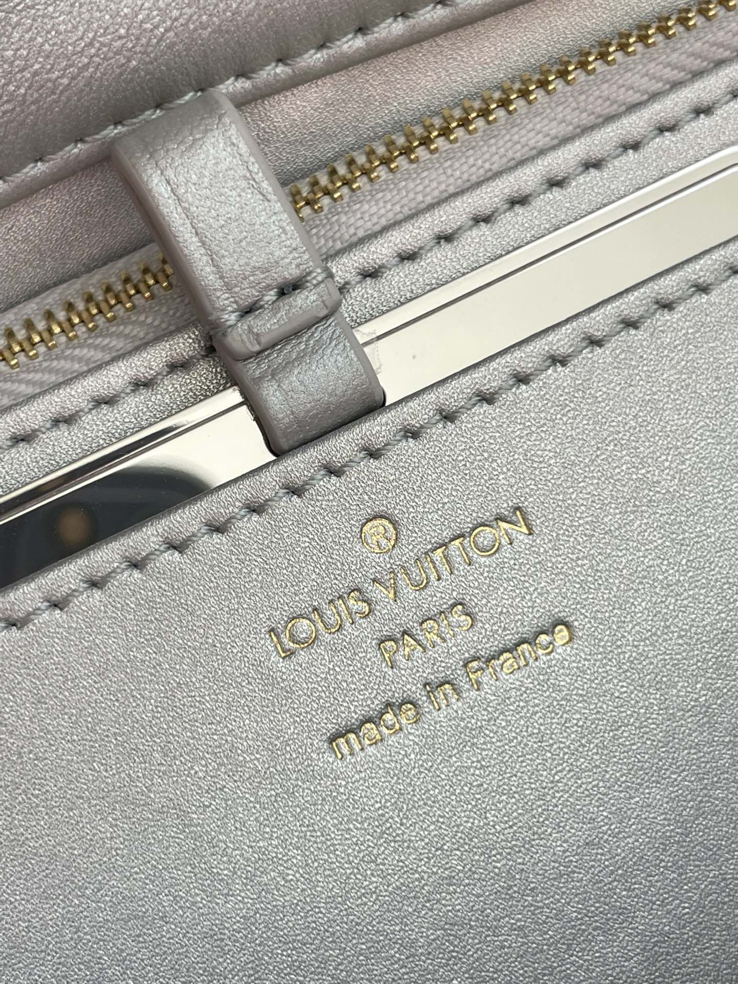 GO-14 MM 23 IN ECRUME GRAY QUILTED LAMBSKIN GOLD HARDWARE
