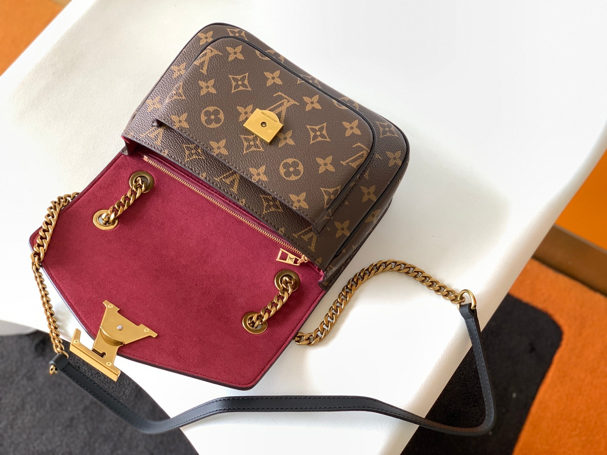 - Aged gold-colour hardware