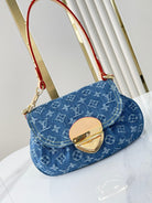 SUNSET 27 IN BLUE MONOGRAM DENIM GOLD BUCKLE