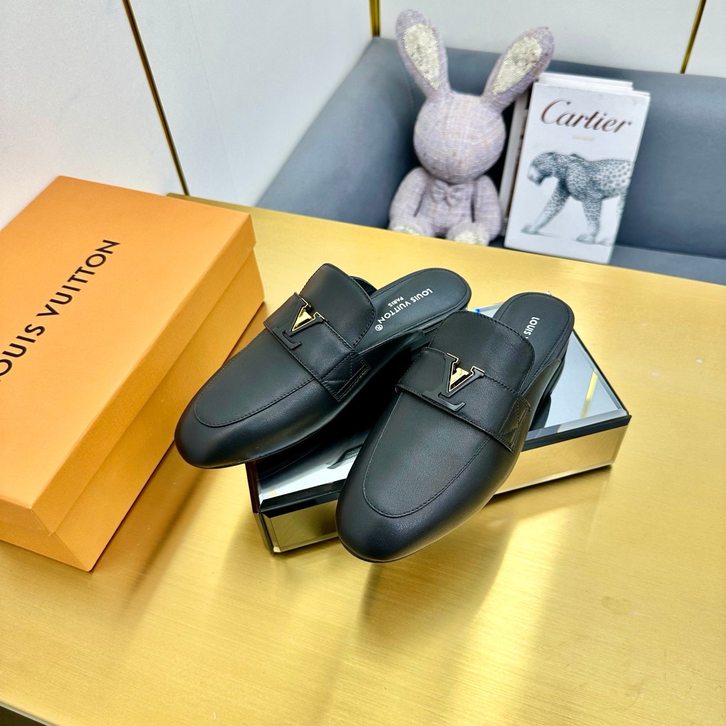 LV 25C Capri Loafer Black Wrinkled Cowhide 219929