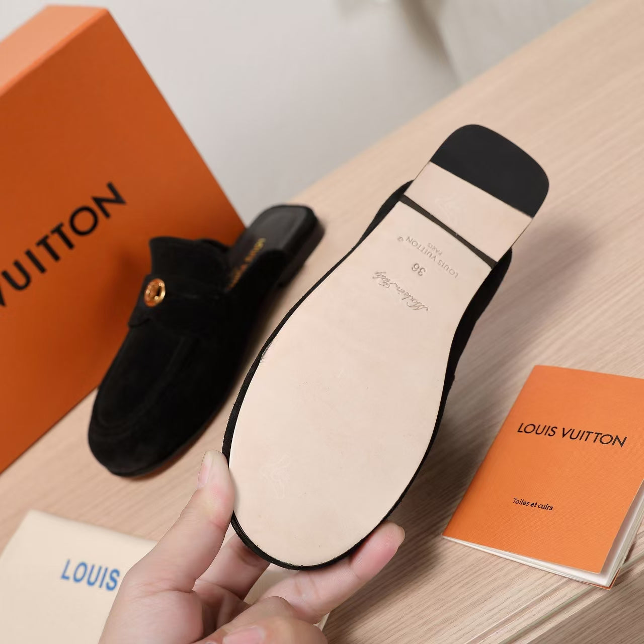 LV 25C Flat Mule Black Suede 218313