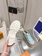 LV Pharrell and Nigo Hiking Shoes Light Blue Orange Sheepskin 383740