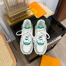 RUN 55 series leisure sports shoes are made of composite mesh fabric, rubber, adhesive film, and other technological materials. They are paired with solid color cowhide and suede cowhide, exuding a sporty style. The added cushioned lining and thickened rubber outsole provide comfortable wear. Monogram canvas heel straps and other logos convey brand interest, combining fashion and practicality. It won't rub your feet and increases height by 5cm, forcefully giving you long legs! With good looks, height, and technical features, this modern sports shoe enhances the proportion of the thighs when worn and has high technology content. 😠Perfect details 💯
