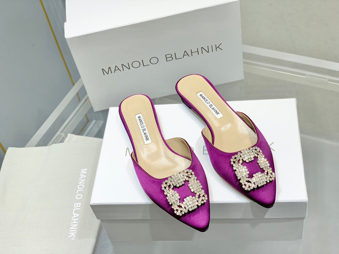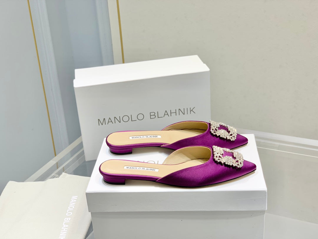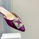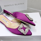 Manolo Buckle Flast Mules Purple Silk 327513