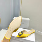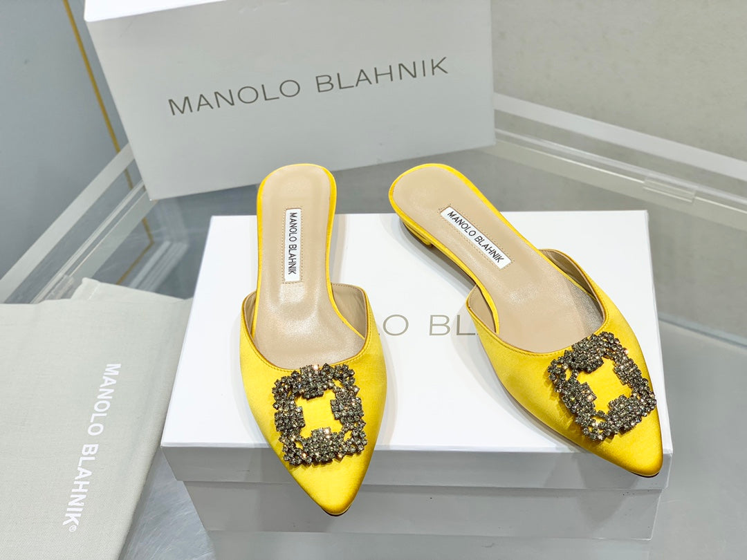 Manolo Buckle Flast Mules Yellow Silk 327516
