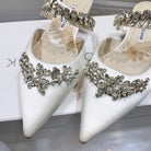 Manolo Flats Mules Crystal White Silk Satin 327471